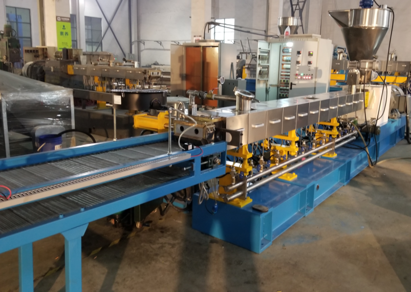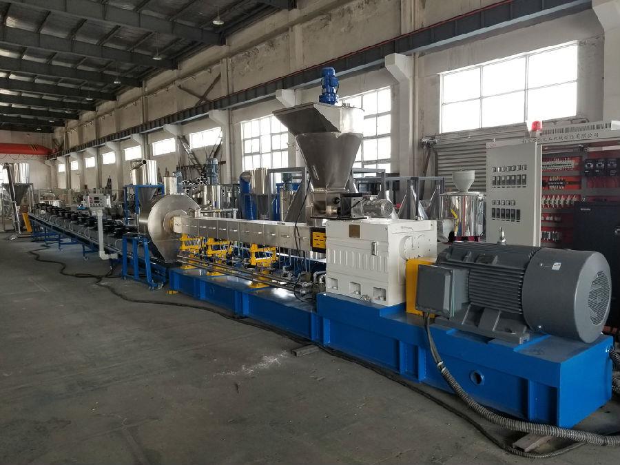 聚乳酸是一種透明、脆性的熱塑性塑料,具有良好的拉伸和彎曲強度,但韌性較差。為了擴大其應用范圍,通常與PBAT混合使用,以增加其韌性,同時(shí)保持其生物降解性。采用雙螺桿造粒機,將聚乳酸、PBAT和玉米淀粉混合成顆粒狀。然后將可生物降解顆粒注塑成型或吹制成薄片、薄膜和容器。其主要應用領(lǐng)域是一次性包裝市場(chǎng)和醫用植入物。由于聚乳酸對水的敏感性,雙螺桿造粒機應采用以下冷卻制粒方法:風(fēng)冷輸送帶造粒。