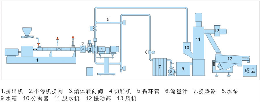 一條完整造粒生產(chǎn)線(xiàn)的生產(chǎn)周期取決于機器的大小及配置。標準機型的交貨時(shí)間一般在15天至90天之間。